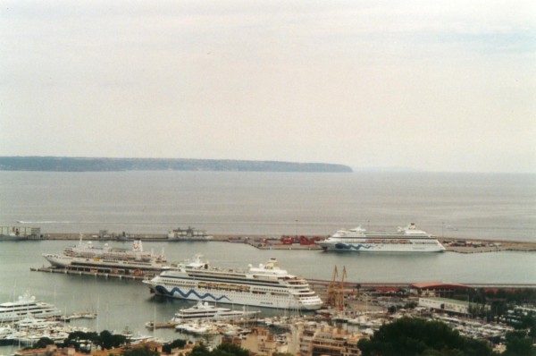 AIDAvita (center), AIDAcara (right) and Thomson Spirit (left) are shown together in the port of Palma de Malloca at the 22nd of september 2005.