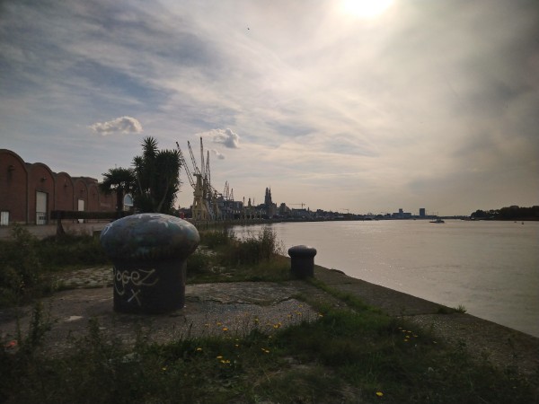 The quay from which the Belgian immigrants left Antwerp for the new world, sailing on ships of the Red Star Line and also Canadian Pacific. The large boulder you can see in front was especially placed to hold the moorings for their largest ship, the Belgenland, who started service in 1923.